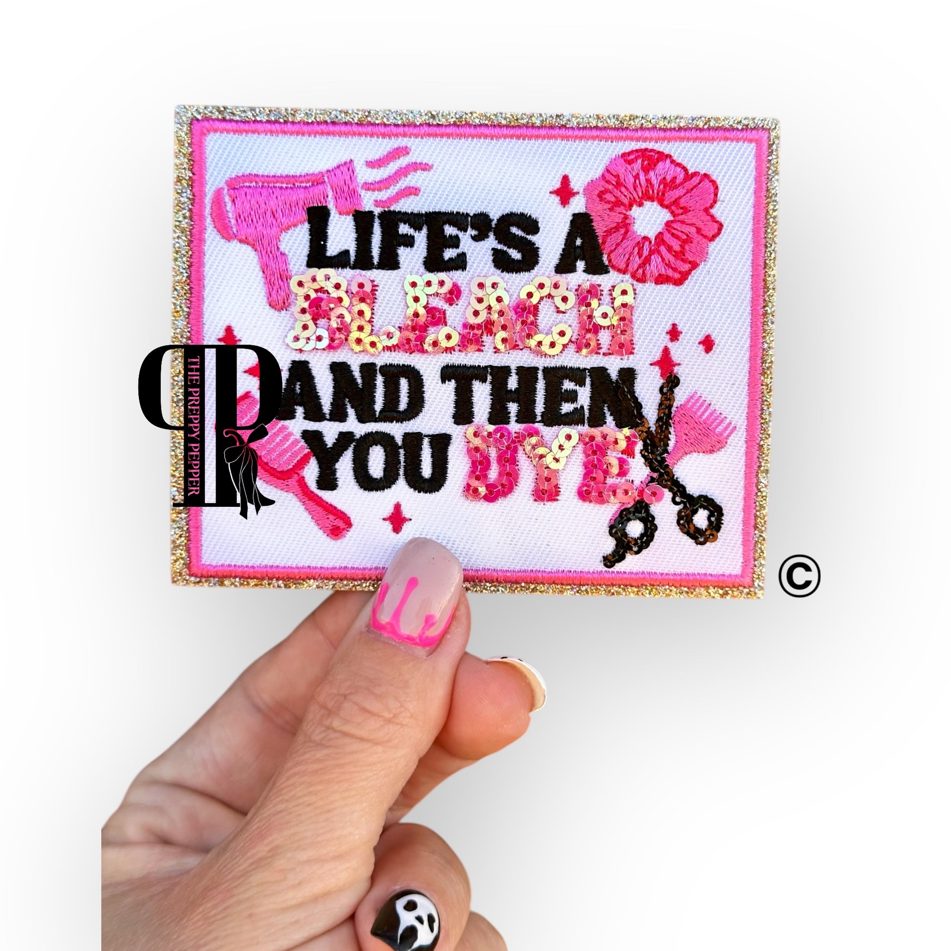 Sequin & Glitter Hairstylist Life’s A Bleach & Then You Dye Patch